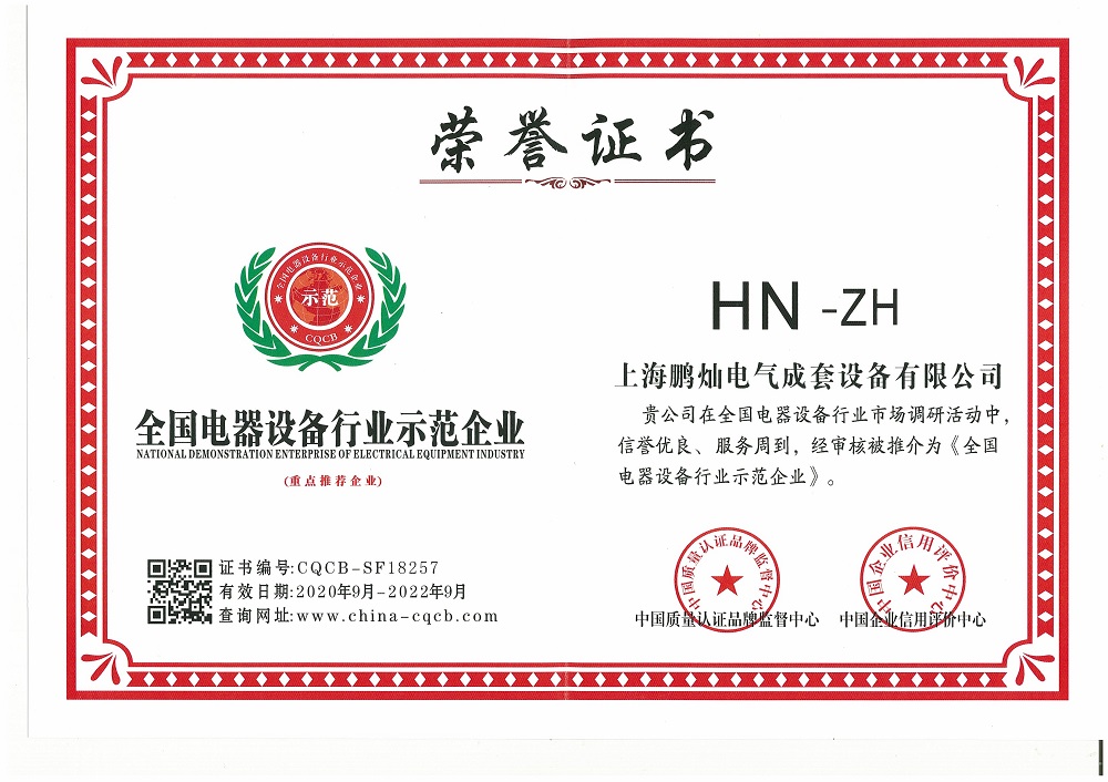全國電器設備行業示范企業